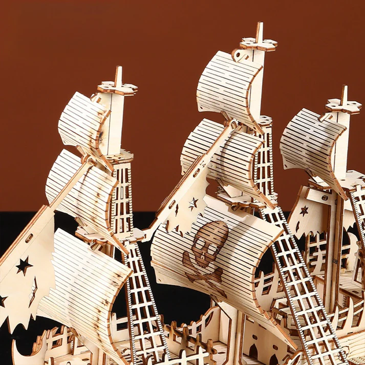 Pirate Boat 3D Wooden Puzzle Ship Building Model Kit Assembly Jigsaw for Adult