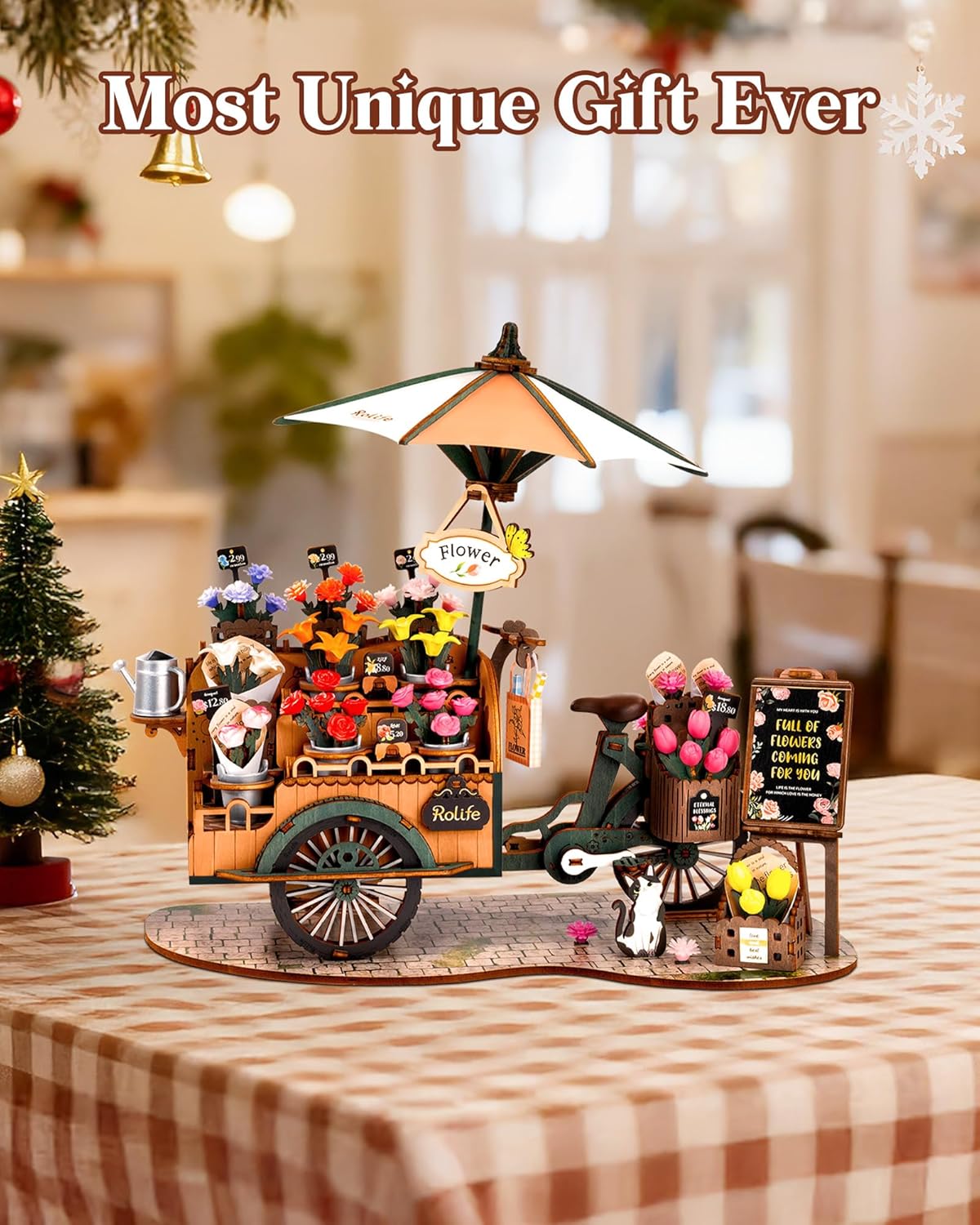 Rolife 3D Puzzles for Adults Wooden-Model Building Kit Flower Cart to Build-Crafts for Adults Collectibles Gifts for Boys Girls