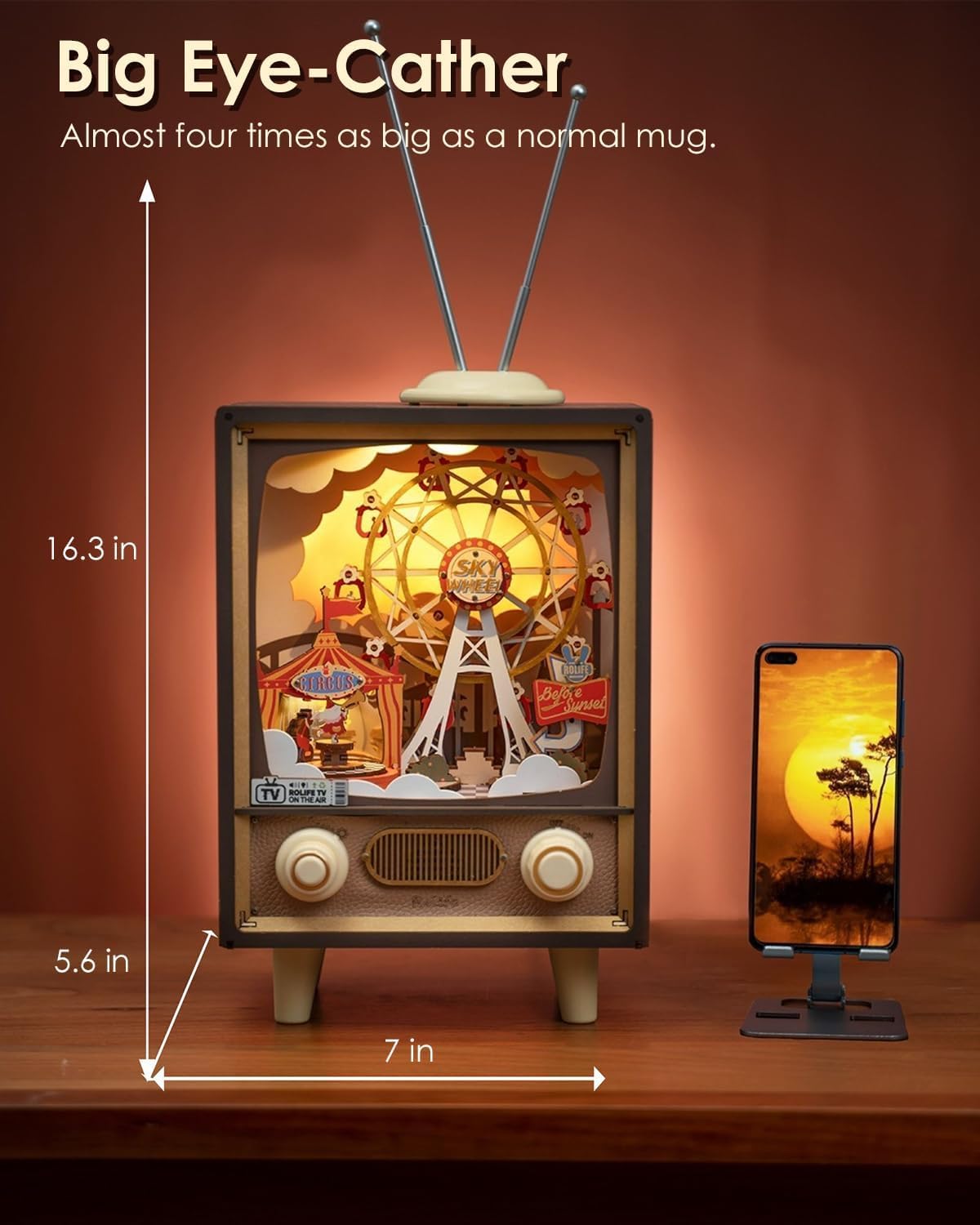 Rolife 3D Wooden Puzzles DIY Book Nook Kit 16 Music Box Model Building Kit with LED 174pcs Hobby Gift Craft for Adults Girls Boys (Sunset Carnival)