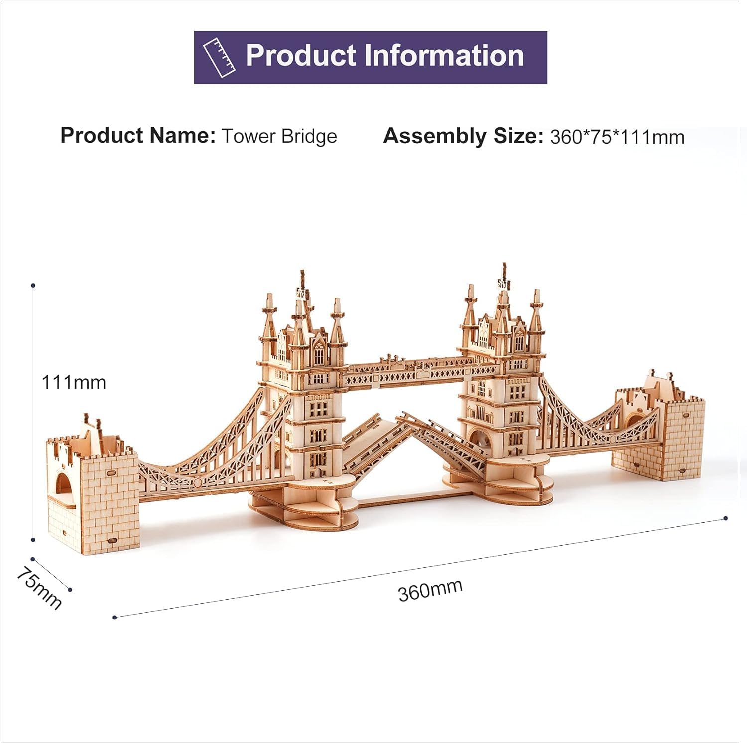 Rolife 3D Wooden Puzzles DIY London Tower Bridge Craft Model Kits for Adults to Build Birthday Gfit for Friends and Family