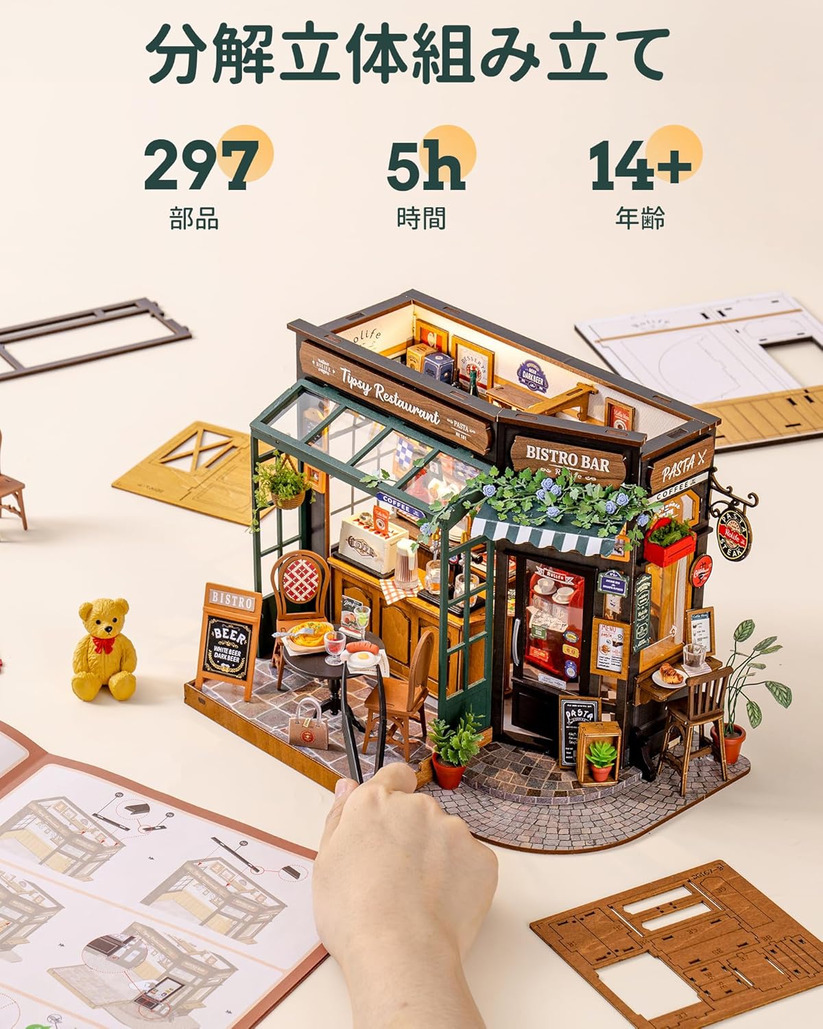 Rolife DIY Miniature House Kit for Adults, Mini Wooden Dollhouse Kit to Build, Bakery Tiny House Miniatures Diorama Building Kits-Birthday Christmas Craft Hobbies Gift for Teens Kids(Tipsy Restaurant)