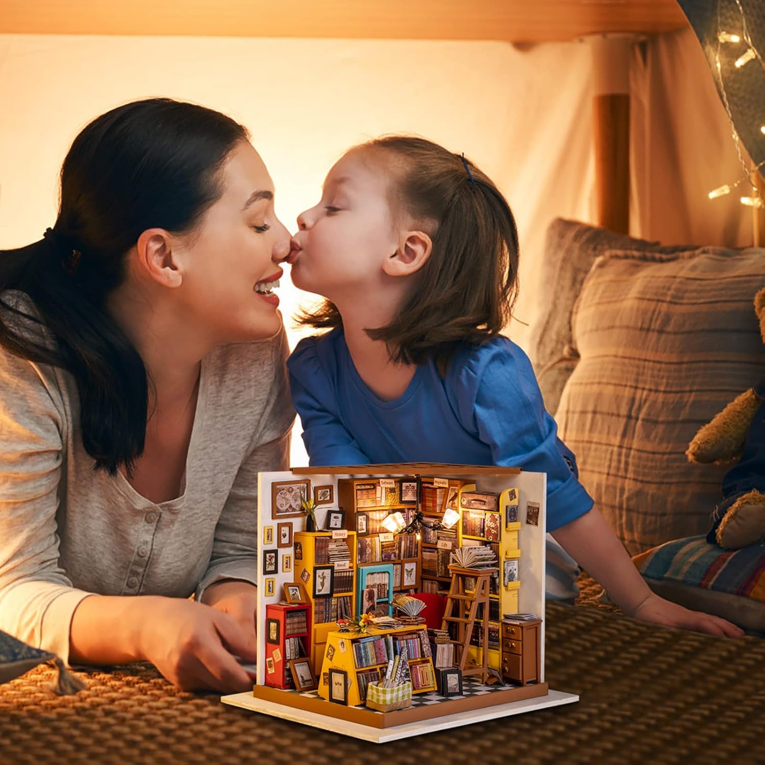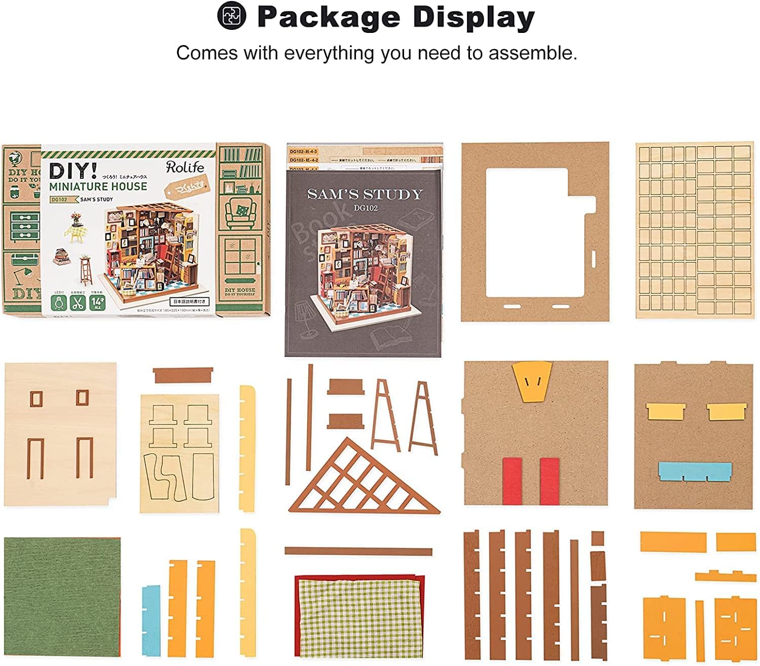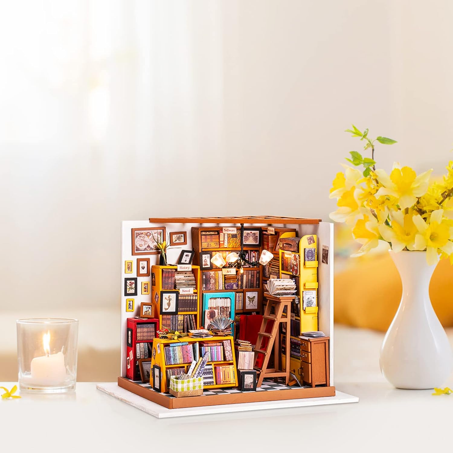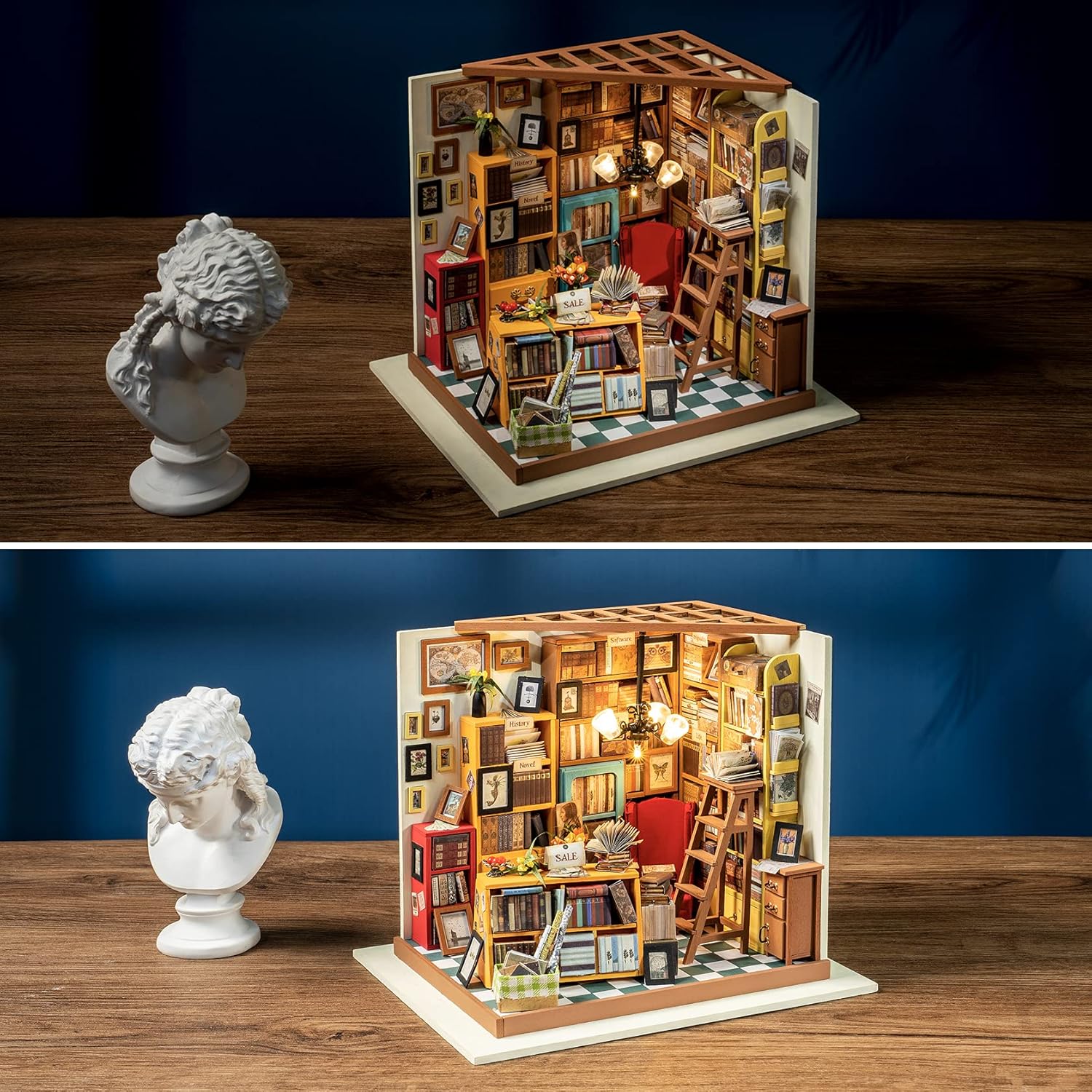 Rolife DIY Miniature House Kit Sam’s Study, Tiny House Kit for Adults to Build, Mini House Making Kit with Furnitures, HalloweenChristmas DecorationsGifts for Family and Friends (Sam’s Bookstore)