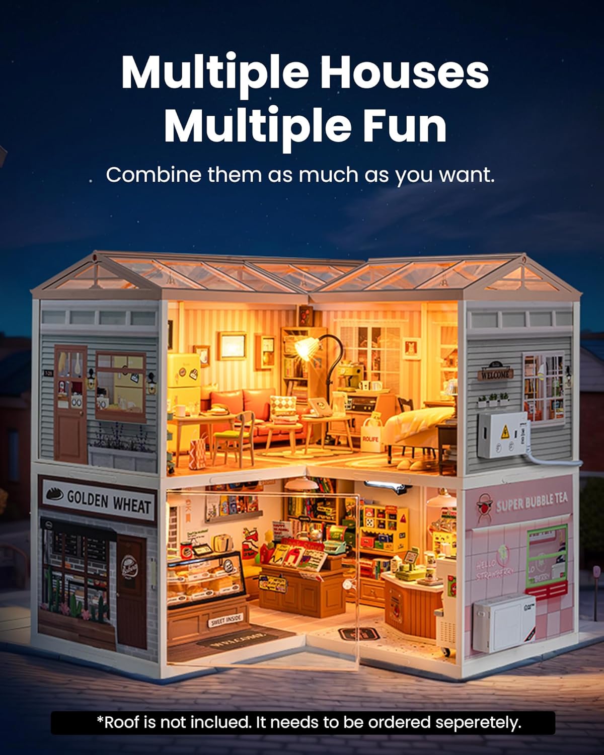 Rolife DIY Miniature Plastic House Building Set Toys Playset with LED Suitable for Mini Figures Construction Toys Diorama Kit Gifts for Adults (Cozy Living Lounge)