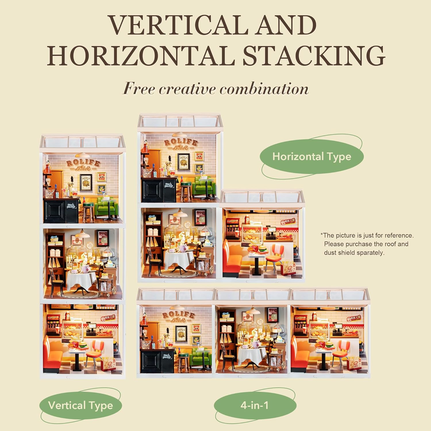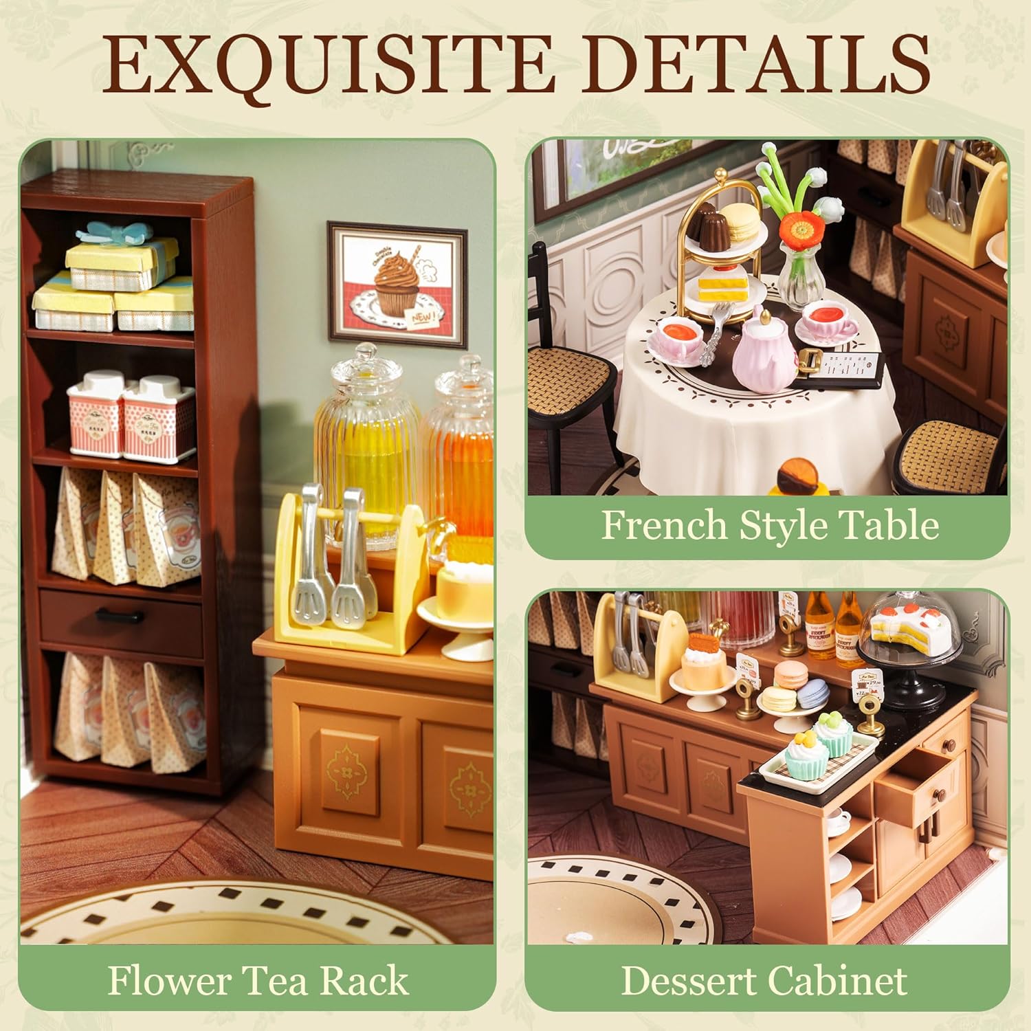 Rolife DIY Miniature Plastic House Building Set Toys Playset with LED Suitable for Mini Figures Construction Toys Diorama Kit Gifts for Adults (Sweet Sips Tea)