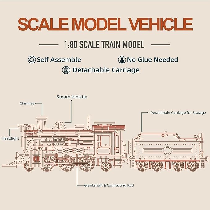 [Kit modello locomotiva a vapore in scala 1:80] – Tutte le parti sono in legno, una replica in scala 1:80 di un treno a vapore retrò del XIX secolo, un’enorme sorpresa per gli amanti dei treni retrò e dei modellini.